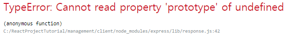 express에서 불러오는 response모듈을 주석처리하니 에러가 해결되었다.