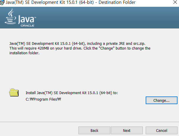 - change를 클릭 후 JDK가 설치 될 폴더를 지정한다.