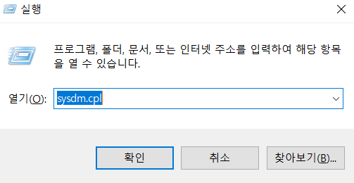 (1) window+r을 클릭 후 sysdm.cpl을 입력한다.