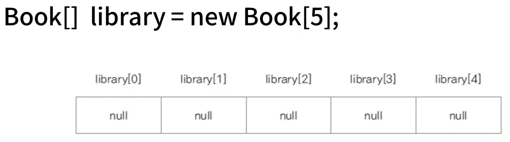 따라서 아래와같이 배열의 각 요소에 객체를 생성해서 저장해야함.